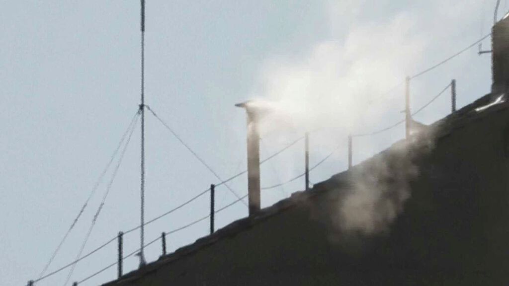 El momento en el que salió el humo blanco en el Vaticano, el 8 de mayo 2025. Foto: AP